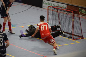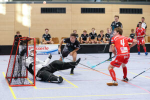Sage und schreibe fünf Tore Rückstand haben die Red Hocks Kaufering im ersten Playoff-Viertelfinalspiel gegen die DJK Holzbüttgen aufgeholt. Mit dem Rücken zur Wand stehend, drehten die Kauferinger ihr Heimspiel in der „Best-of-Three“-Serie noch zu einem 7:6-Sieg in der Verlängerung.