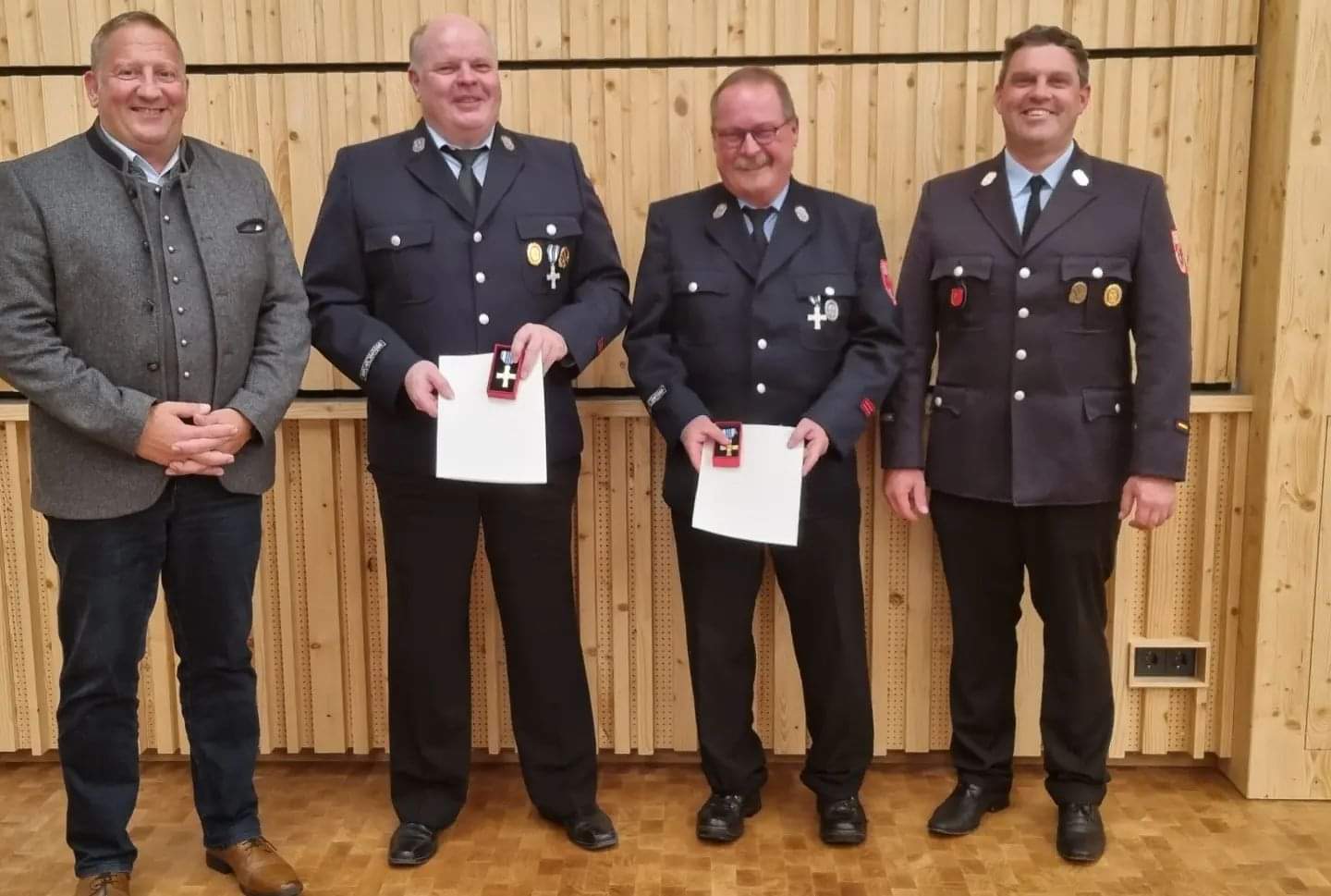 Für mehr als 40 Jahre ehrenamtliches Engagement wurden zwei Kauferinger mit dem Feuerwehr-Ehrenzeichen geehrt.